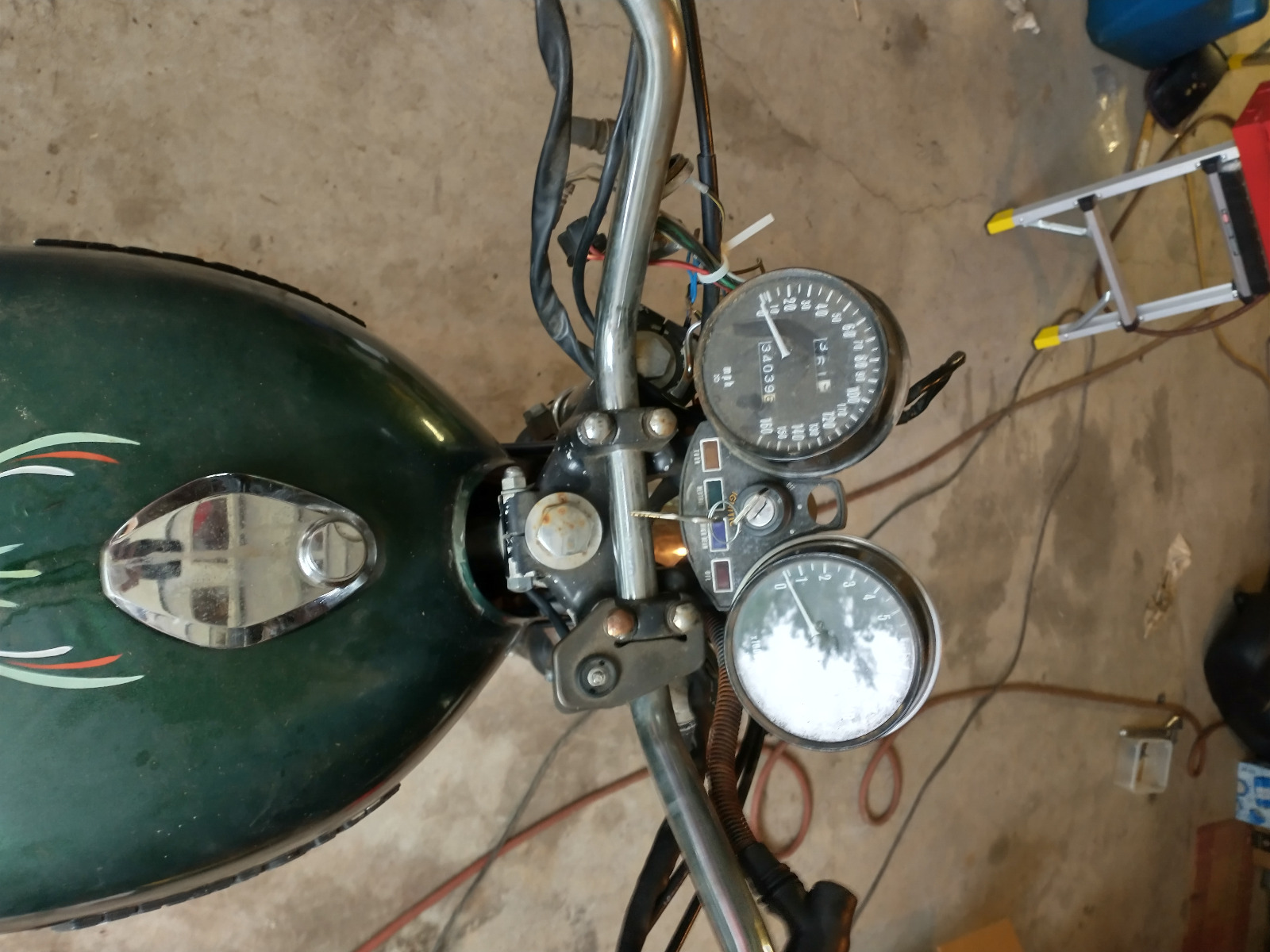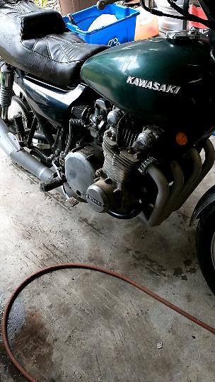 got the bike about 10 years ago looked like above. Was sitting in a friends (AJ's) field, and paid $100.00. Now prior to me buying this a different friend (Ray) owned the bike when it had the original factory vetter fairing. This was 1994 ish, he wanted $900.00 for it and I couldn't afford it. Eventually Ray sold it to another friend (lucas) who took off the vetter fairng (supposedly with leg guards), sold it at a swap meet and then it ended up at AJ's to sit and become a mouse house, mostly in #4 cylinder. Anyway motor has been stuck ever since. I tried recently to unstick it gently with an aquarium pump (ala Dawin on you tube) to no avail. So... A couple years ago, my wife's girlfriends husband mentioned his mom's deceased husband had a kz1000, parts , a kz 650, a motorcycle trailer, spare motor etc.He said I could have all of it free. Long story , covid and assorted timing issues, I finally got the motor(kz100b2) I'll add more soon