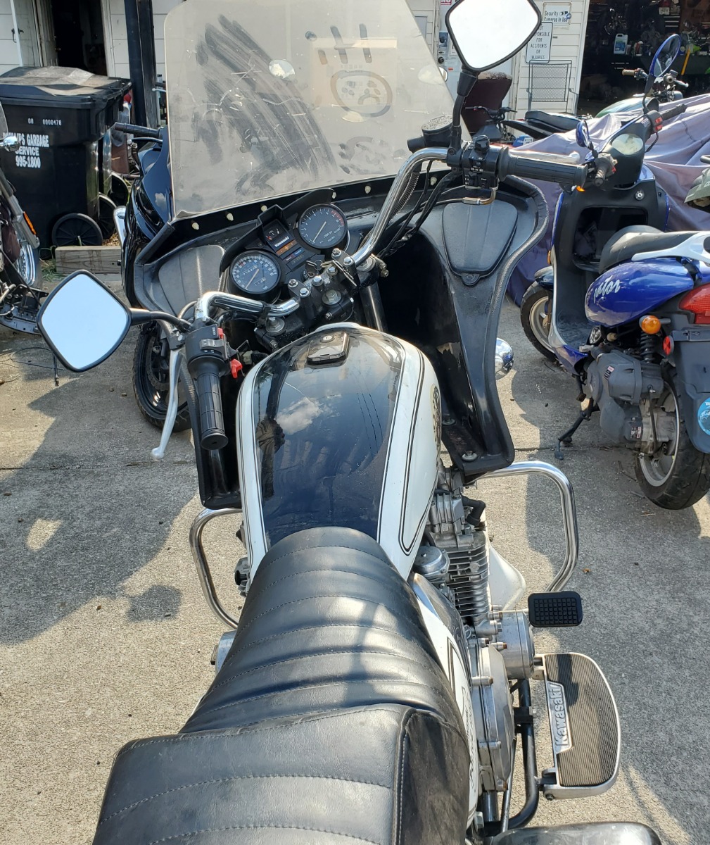 Unfortunately the solo seat was replaced. The stock KZP seat is very comfortable. The windscreen was treated poorly but may be able to be buffed out.