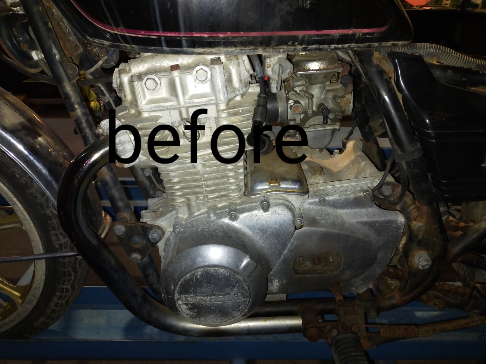 anyway,. ,up and running very nicely now,. ,cleaned up engine cases a wee bit,. ,new brakes front and rear. new chain and sprockets. rebuilt master cylinder. new battery and tyres.