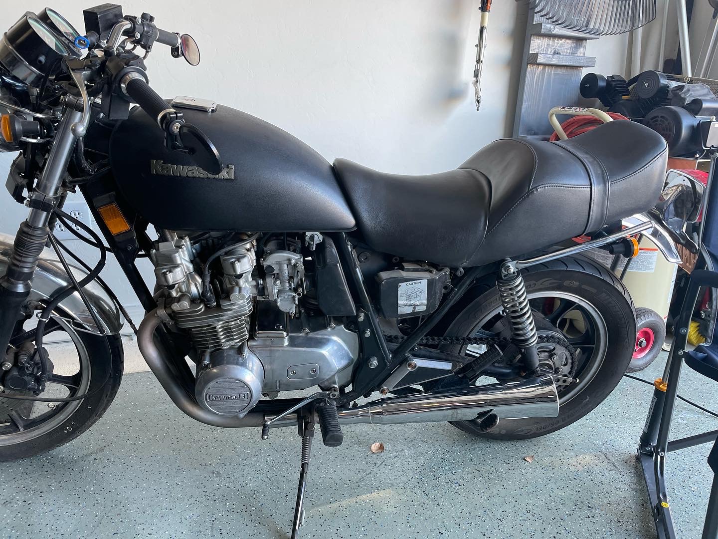 Hey there, picked up this ‘81 kz550 ltd in January. I’ve been working on it here and there. Just got the wheels back from powder coat and the new tires mounted. Bikes not done yet but, it’s very rideable and I’m digging the progress.