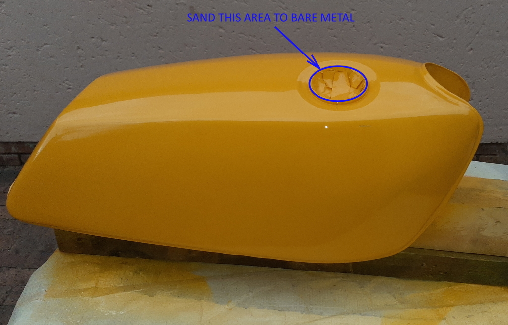 Also, remember to "feather" (down to bare metal) the area at the gas filler opening, particularly where the cap seal contacts the tank opening.