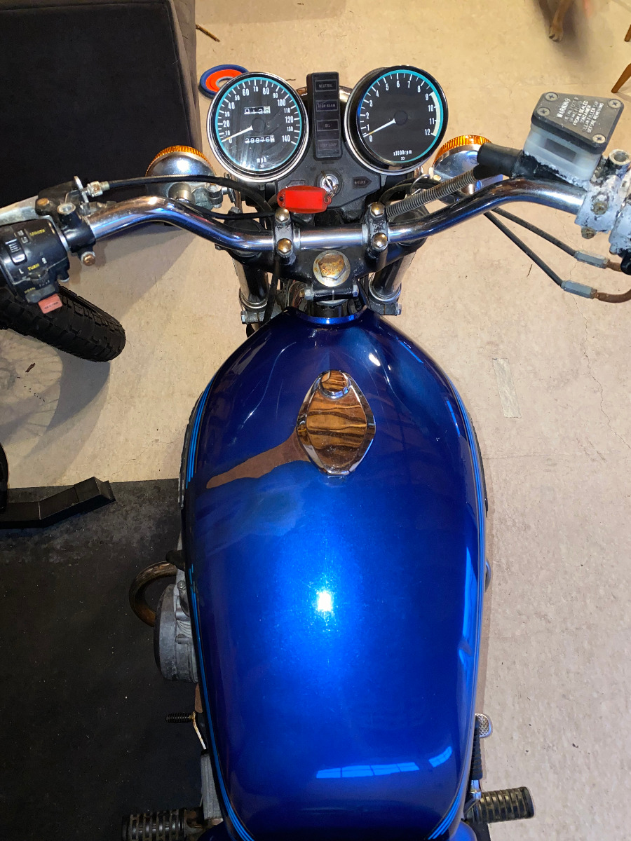 I definitely want to do some work to the bike over time, maybe get started after this season. I was thinking about first and foremost, redoing the wiring, handle bars, lights and maybe some paint. I really like the original blue, but there is a large rust spot on my gas tank and some scuffs on the tail. Let me know what you guys think! Any input would be greatly appreciated.