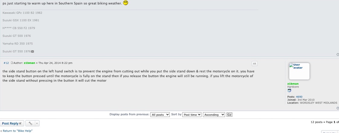 I remember seeing mention of this switch in a road test of the "K" model Ltd. The journo said if the switch wasn't activated the motor cut when you lift the bike off of the stand, you could then re-start when the stand was lifted to prevent riding away with the stand down (not sure what market this was for as my "K" doesn't have it ??