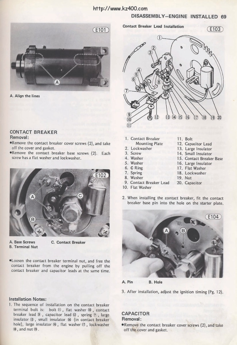 Here is a page from a 78 -81 manual for the kz400 showing points and how to to install the washers and insulators