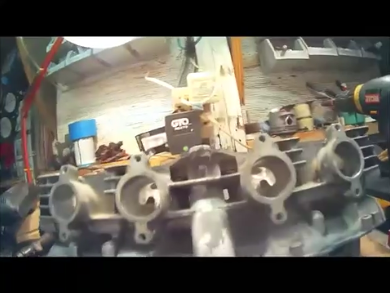I'm still using the "Junk Head" I bought for $20. I got it for the valves, lifter cups and other things. It came without caps. I went back and found some but they wouldn't work as they were. A friend told me of a R22 head he had where he had the same problem. He honed them to make them fit. With that in mind I set out to do the same thing. One was too far out so I couldn't use it. Clay said he had a J head that was too far gone so he offered to send me one to see if it would fit. It did and I asked him if he had another so he sent me another one. As it turned out 1 and 4 were close enough to hone to size but 2 and 3 would only work if fitted backwards. The specs. are .001-.006 so with a Plasti gauge I honed them to fit. While I was at it I ported the head to clean out the casting marks and slag plus the shelves around the inside of the valve seats. Just a clean up and matched the ID's of the intake manifolds. I worked on here and there over a few months until it was done. Being the head I had on the bike needed a complete overhaul I switched them and what a difference. The bike came ALIVE.