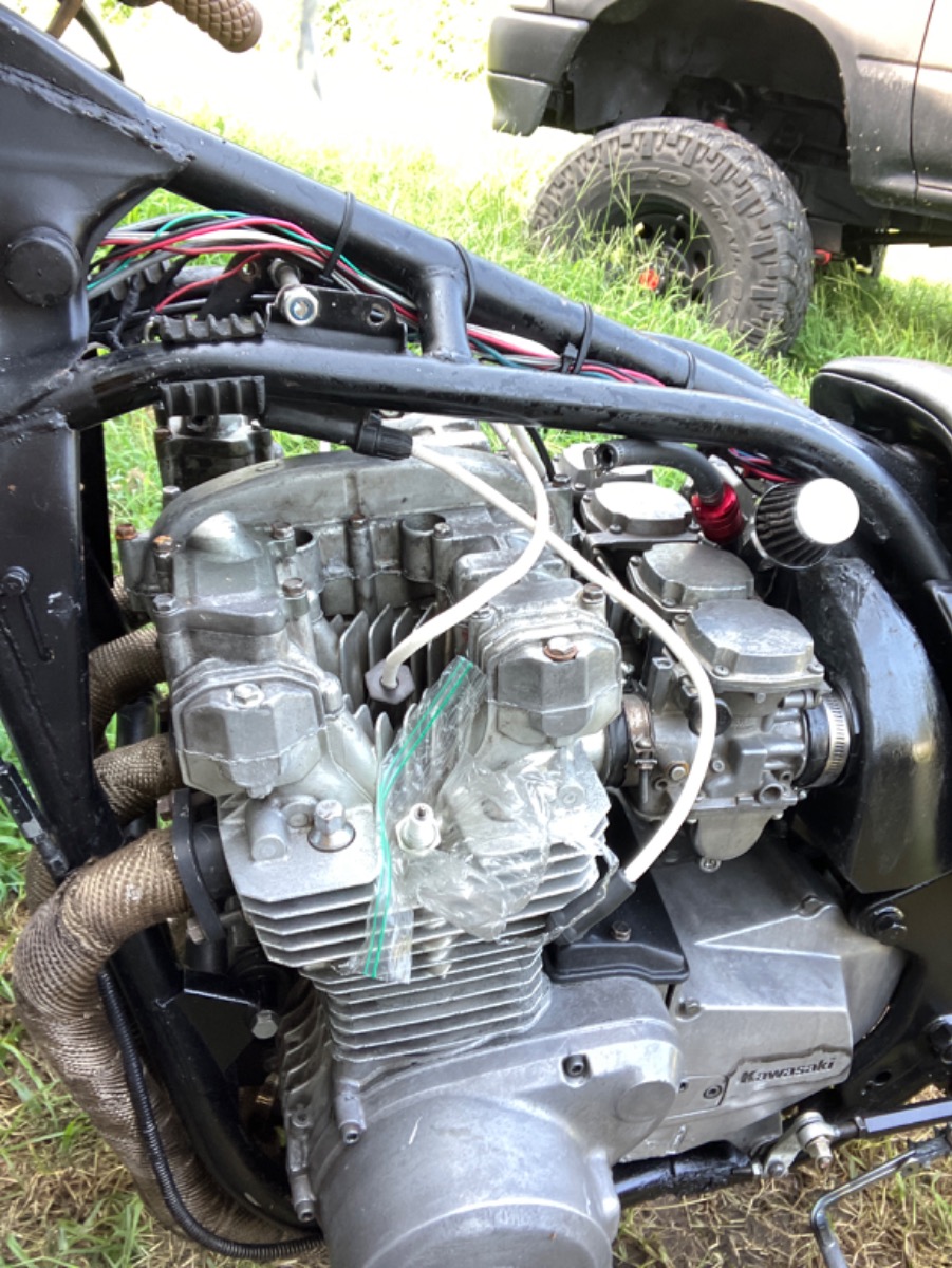 The J/GPZ is the last incarnation of the 1000/1100cc aircooled fours, has no provision for a kickstart and has a hyvo style camchain.