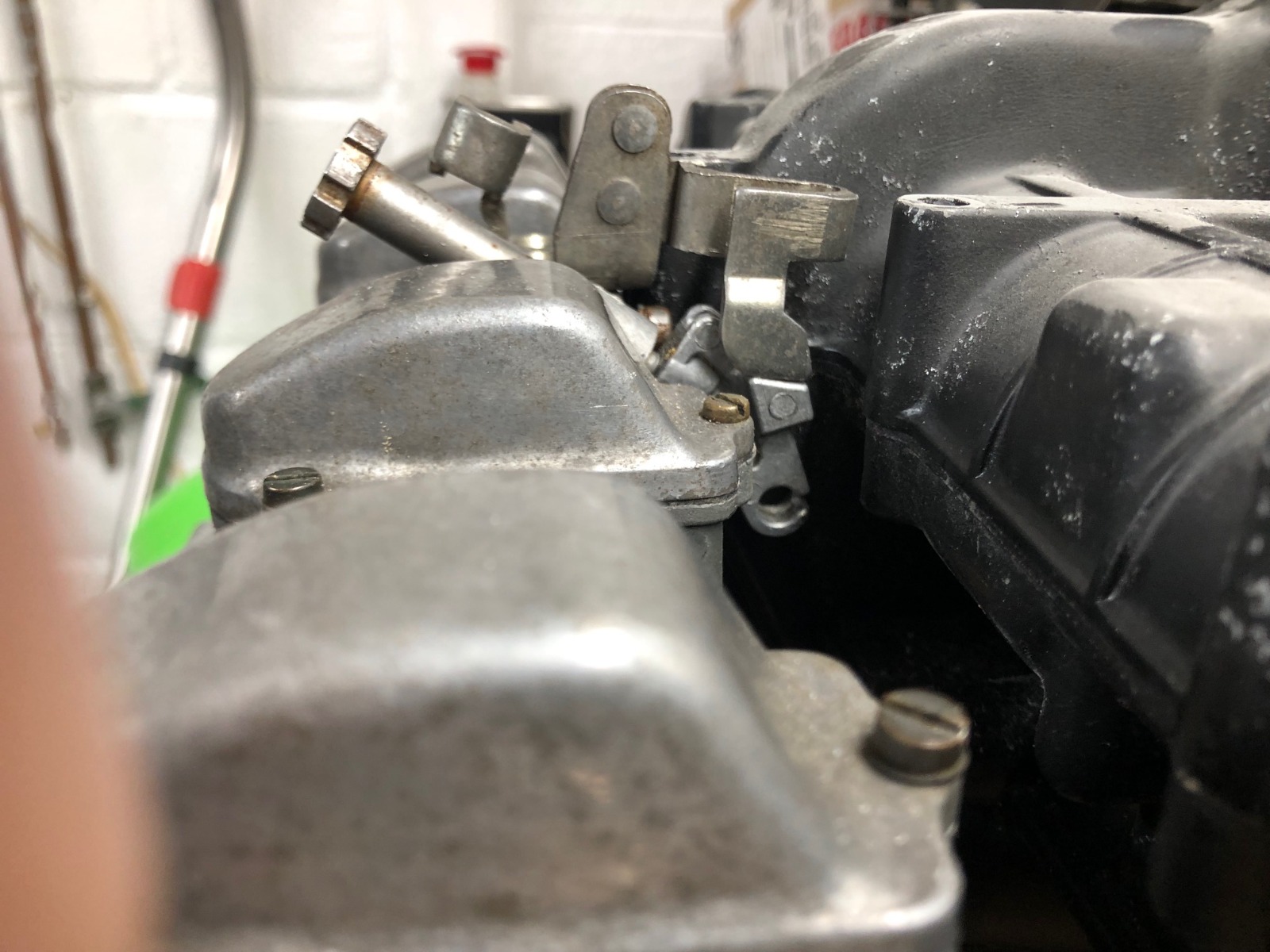 Suzuki throttle bracket looks similar to Z900 and overlaps the rear cam tunnel bolt.