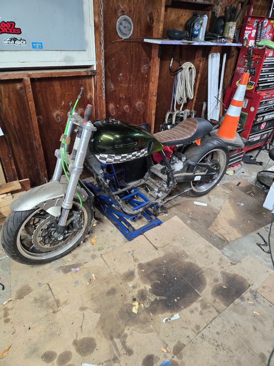Swing arm has had spacers made to fit the stock swing arm bolt .. couple issues im seeing is when the swingarm is in place the shock isnt lining up almost seems like the dog bones need to be shorter to allow the shock to stand more upright and angled towards the engine .. should I attach the tri member to the rear of the cross brace on the frame ? Say where the old center stand mounts are ..