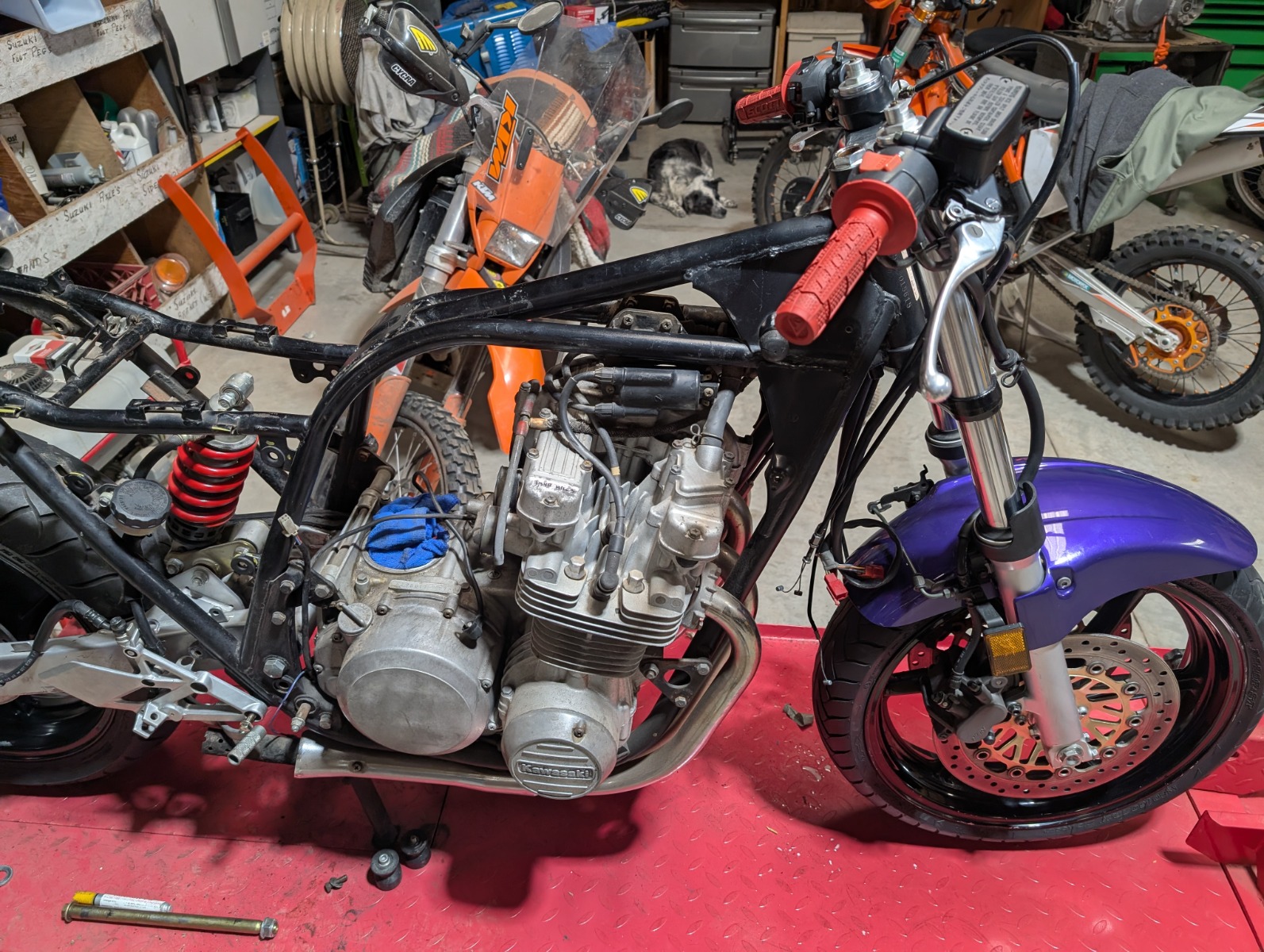Welcome from central Massachusetts, Bryan. This is the place where the KZ wizards can help us out with the problems we create for ourselves! Interesting project, using front and rear components from the same donor motorcycle makes a lot of sense.