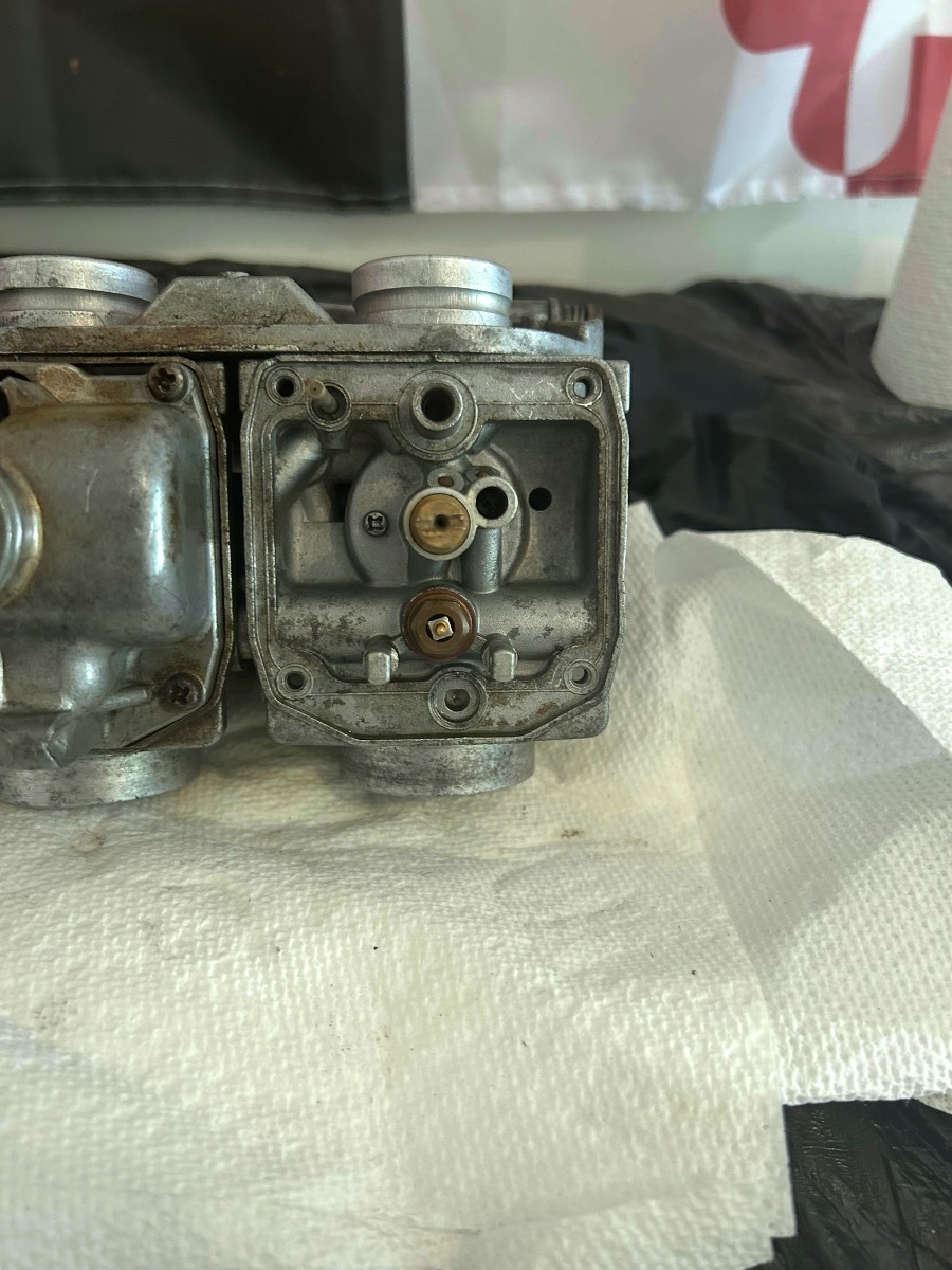 Noteworthy!! Don't over-tighten the Jet Holder or also called the emulsion tube. Its the 8mm socket brass that is holding the 107.5 main jet. Strip-out the slide/Jet block and you're screwed!! Looks like this, lower one in picture.