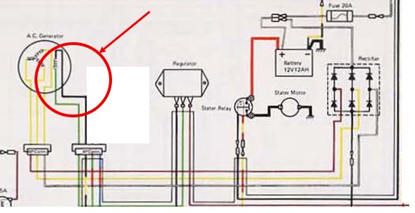 Thanks for your help, the diagram was really useful, do need a new battery as i think the old reg/rectifier overcharged it but with a spare battery I had i was able to confirm its charging at 13.8v!