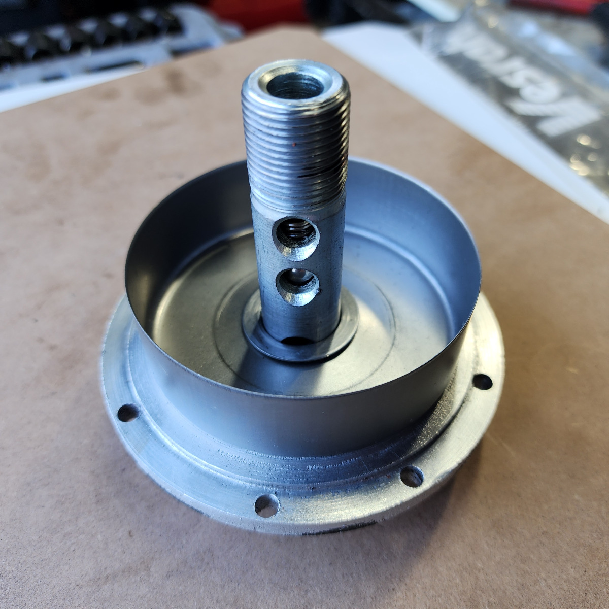 12 Nov 2025 06:10For a thread like that I believe the solution would be to make your own threaded weld bung from 6061 and have it tig welded in. Design the weld bung so it sticks up inside the case so it can be welded on the back side with the oil pan and filter bolt assembled so it lines up perfectly. Then disassemble to complete welding from the filter side, and mill flush on both sides of the bottom case as required.I feel a reputable machinist would do the bore, weld, tapping repair and no other changes would be required, since he could machine the welds flush with an end mill and retain the original chamber height using the same set up as the tapping operation. Kind of a coincidence here - my machinist and I have discussed the same repair for one of my motors, as the threads for my filter bolt are getting worn and loose, and we don't know if we can find the right size heli-coil.