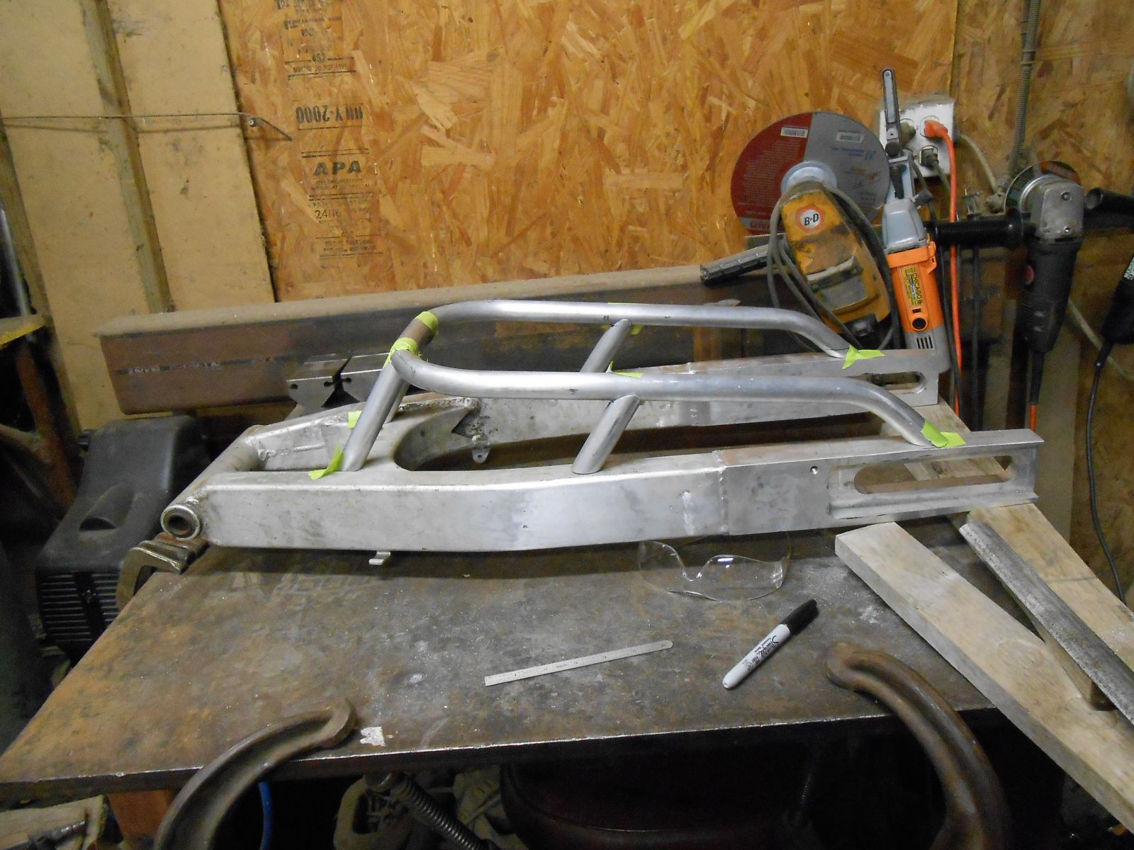 finally got some pure un-interrupted shop time,to get dougs swingarm closer to finished.