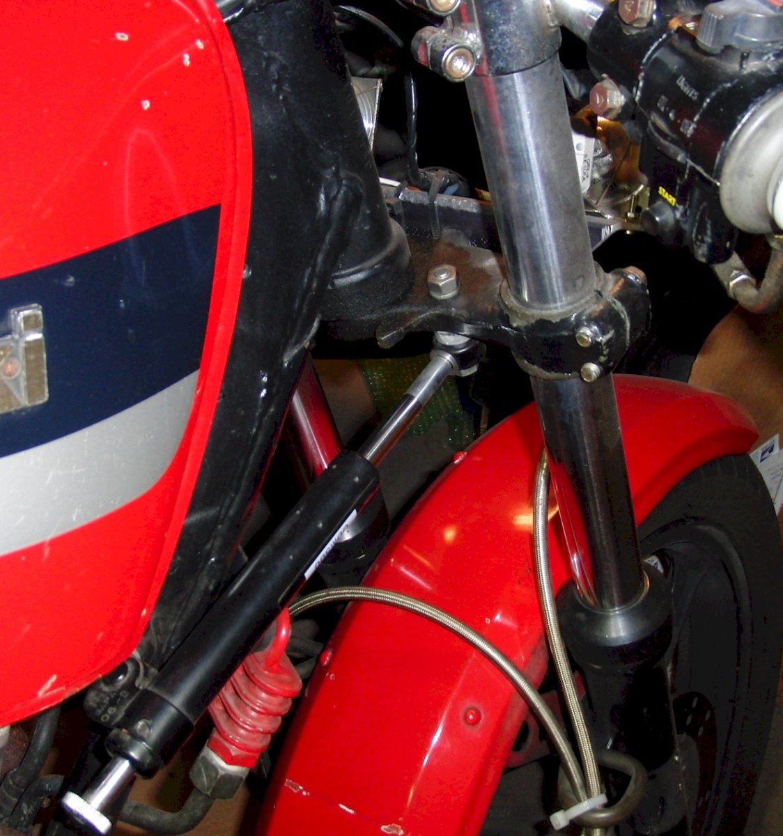 The damper is available on Ebay etc. It is the same one used by Kawasaki on several 1970's models. It's cheap and very effective and has a nice classic look.