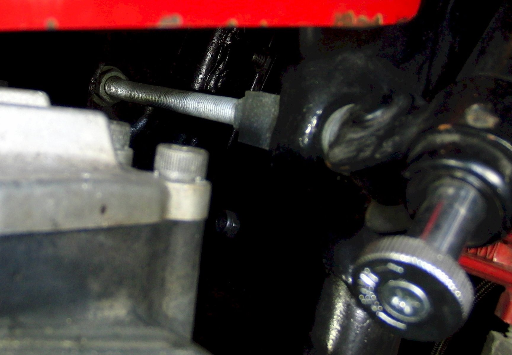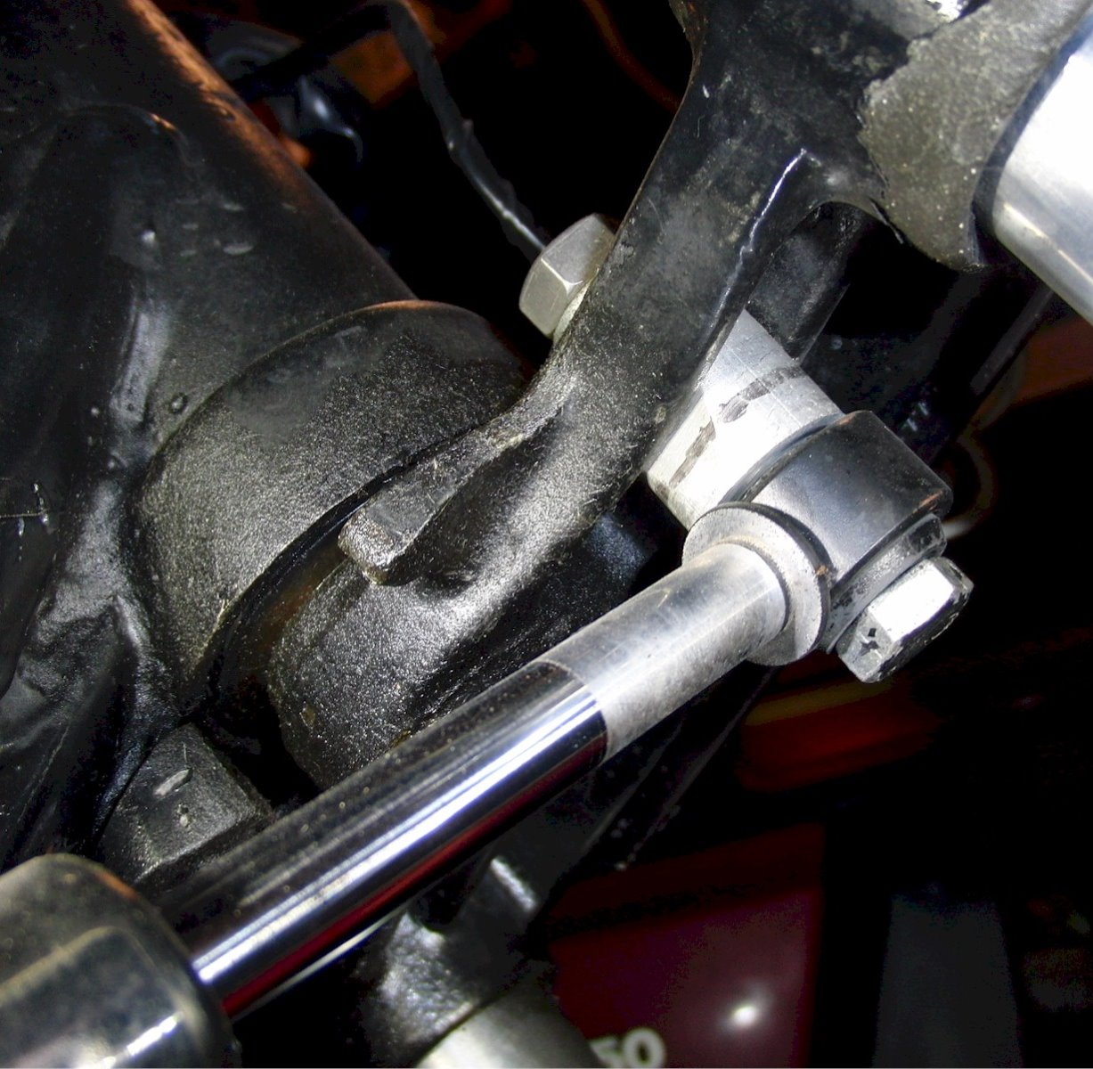 To reinforce the frame in that spot I threaded a steel block with 8mm threads on one end and 5/16" threads on the other and used that block as the nut for the damper. Then I put a piece of all-thread to tie it to the frame on the left side of the bike. The frame is now rock solid where the damper attaches. It is probably overkill, but there was a tiny bit of frame flex where the damper mounted especially when the cold and the damper oil was stiff.