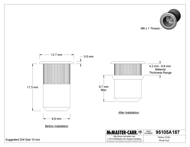 Had to drill a 10mm hole for these specific rivets: