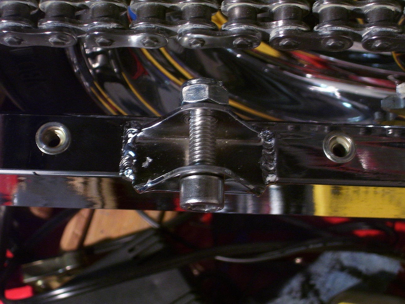 Nice. So that wouldn't weaken the swingarm. That's good. In my mind I was thinking of Sime kind of clamp or ... that's really helpful.