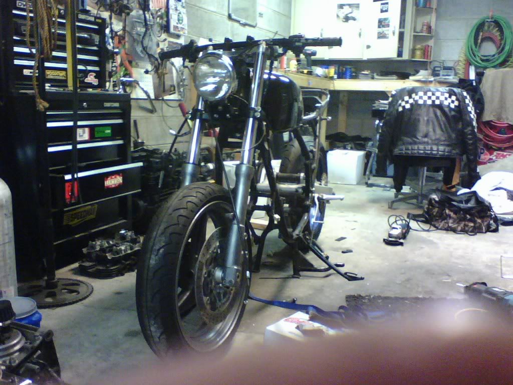 Alright. Now that that is done, I am going to try and get around to a couple of changes to the bike over the early spring (too many irons...). One of which is changing out the base gasket, another is adding passenger peg mounts for the misses, and the other is rearrange the rider foot controls into a slightly rear-set foot rest and associated brake and shift control. I really got used to GP shift from the old arrangement and it didn't really dawn on me how ingrained it was in my muscle memory. I also need to address the fact that the plastic welded part of my tailsection/rear fender popped off one day and I decided that it wasn't executed well. I will weld on tabs to attach teh fender directly to the rear frame hoop and bolt it on that way.