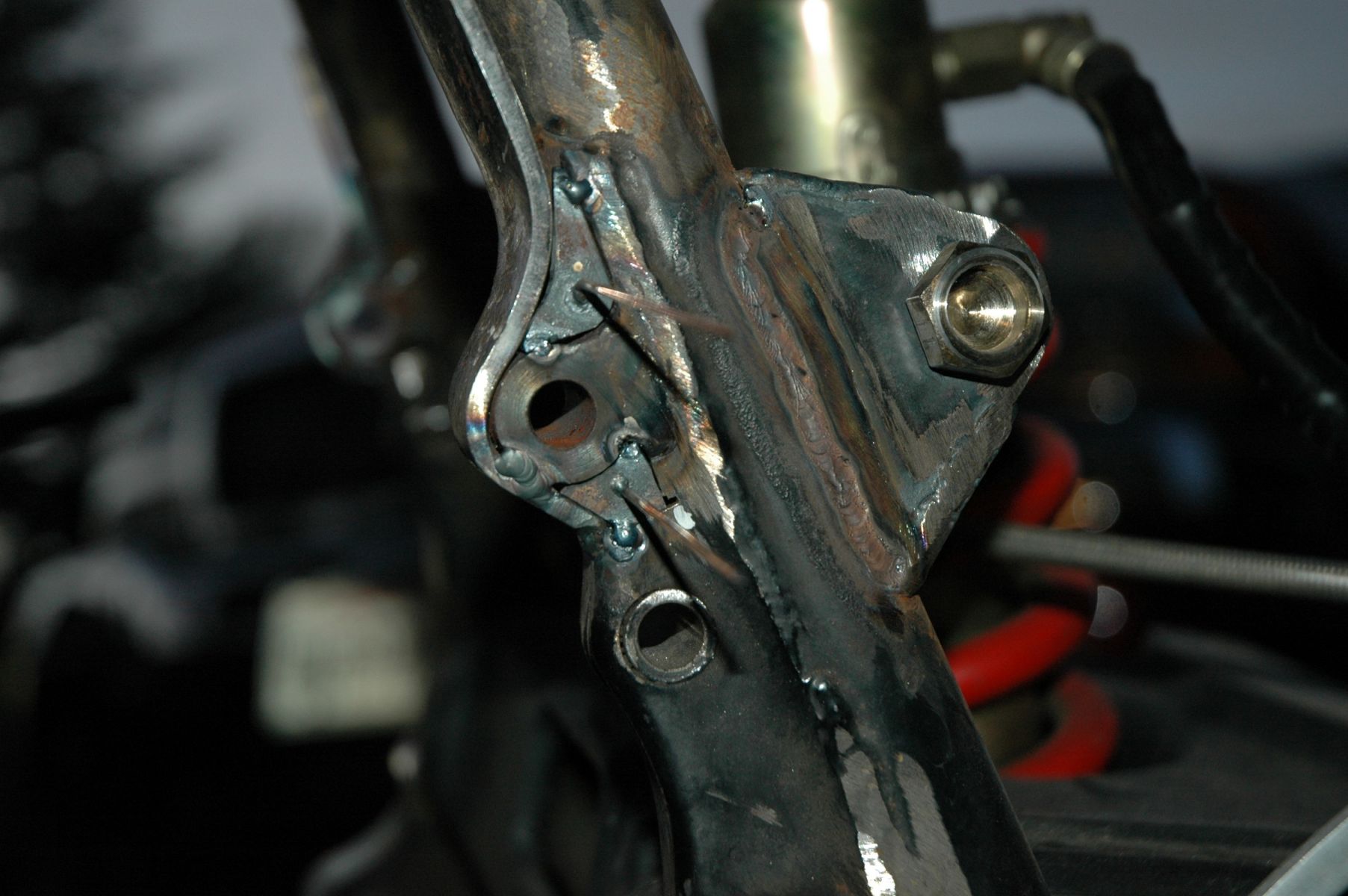 Finished welding up the top subframe mounts, and snapped a few pics. Damn, I think these are the prettiest welds I've done on the whole bike!!! :woohoo: