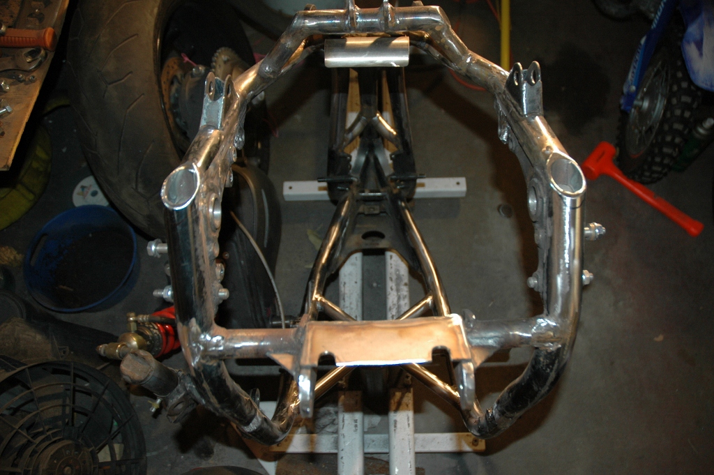 I'll have to post pics later, but for now know that I stripped the bike back.down to the bare frame to clean up any ugly welds, strip tue rest of the frame to bare steel and cleaned up the bottom rear of the frame where I capped the original subframe down tubes. (You'll approve Leon). Cheers for now!