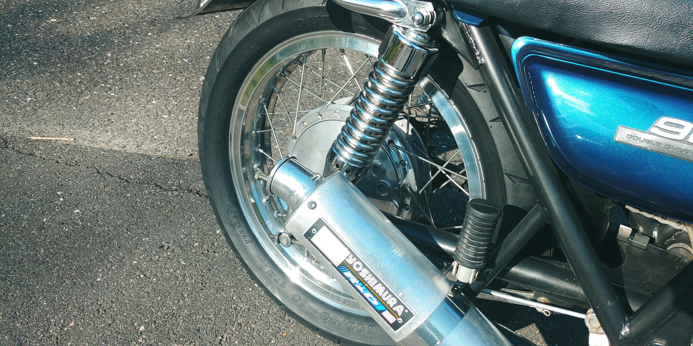 Last I swapped out the rims for Akront (repop) with a wider rear rim and tire. Went with a 3" rim and a 140 tire. Would liked to have gone 150 but Id rather play it safe on this one.