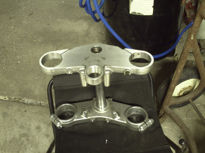 i have ordered some material to build the bar clamps out of,it should be here in a couple days.i still need to weld the stem in,and cut some pockets in the underneath side of the upper triple to get a flat spot to bolt the risers.