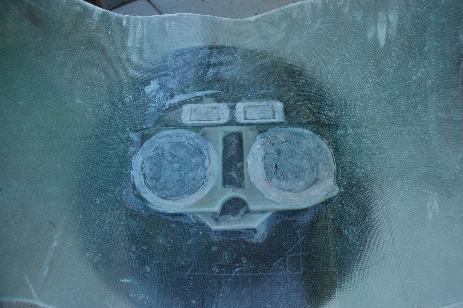 After removing the gauge bezels on the top, I could see that there is nothing left of the opening, so those will be flushed over as well. Here is the plug after prepping the gauge openings: