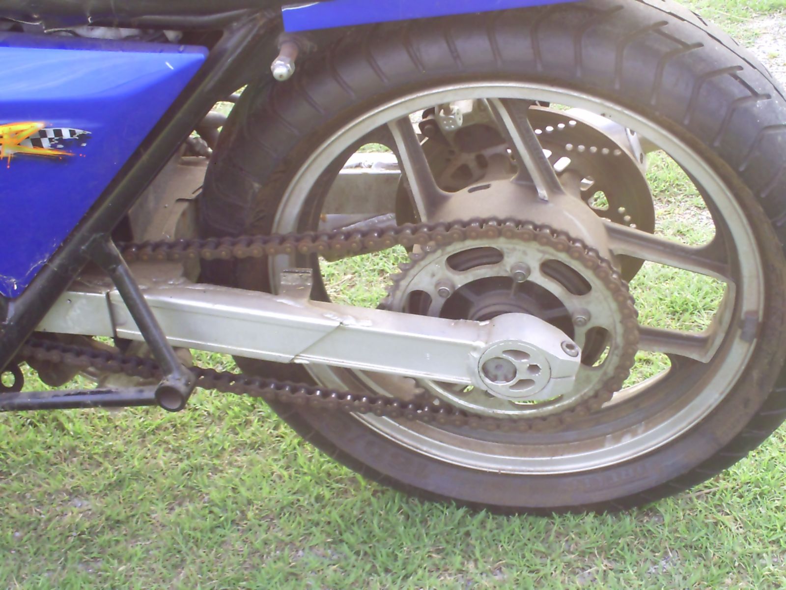 this one has had some early 90's?ninja? swingarm and rear wheel and brake installed under the rear.