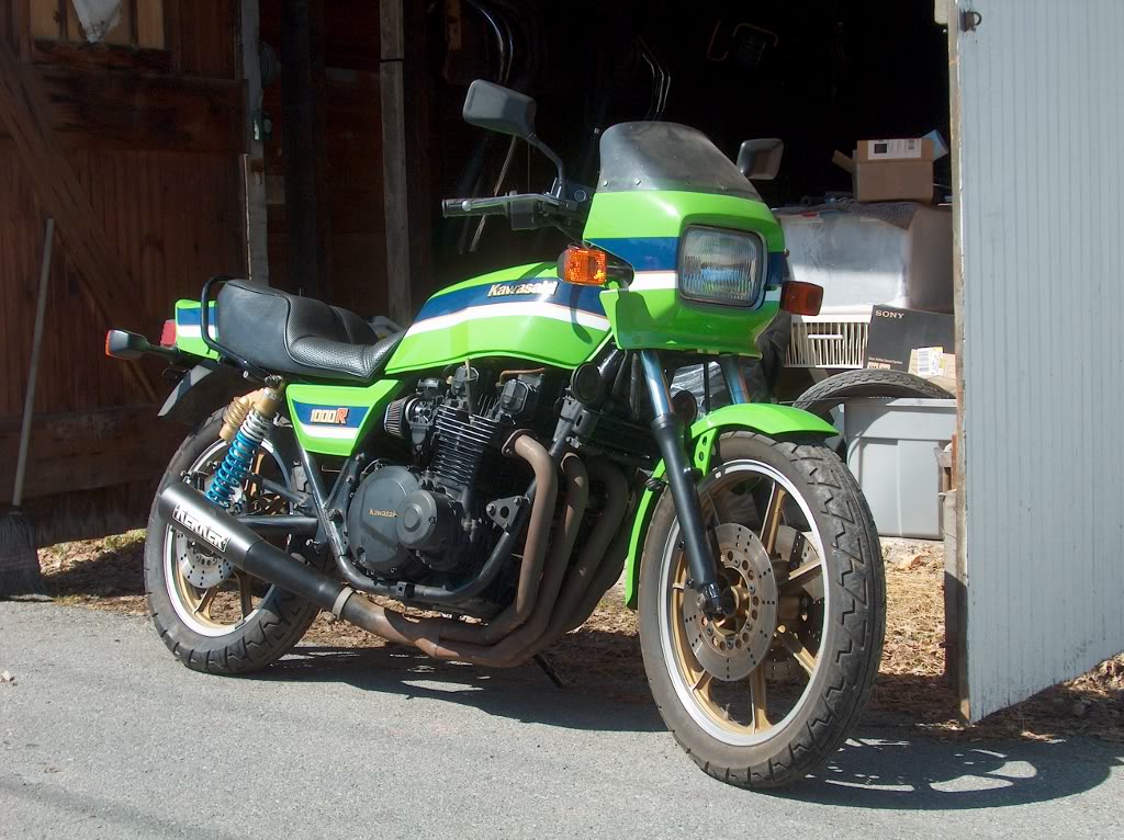 1978 KZ650 C2, 130K kms, Delkevic ex, EI, CVK32, PMC easy clutch, ATK fork brace, steering damper, braced swingarm, ZRX shocks, 18" Z1R front wheel.