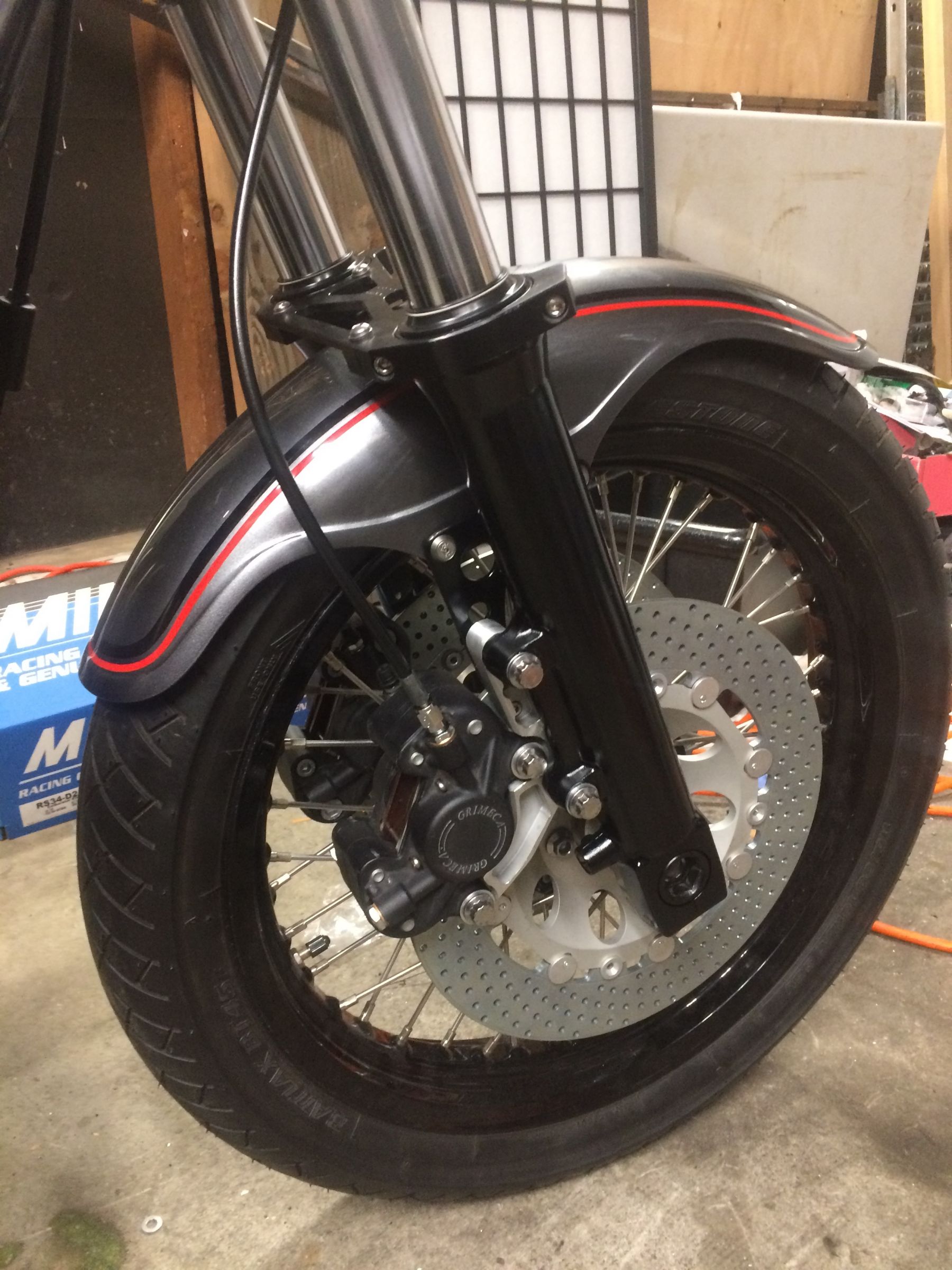 Got some good progress in this weekend. Forks painted and rebuilt with new seals and bushings. I broke down and bought the motion pro seal installer; its a super nice tool, no regrets. Rear brake is bled. brake front brake setup is nearly complete just waiting on a hose. carbs back on; cables and fuel lines finalized. exhaust massaged and back on. I got some repop switches for a kz900 as mine were completely worn out. Folding foot-pegs on. With the moveable brake lever there is plenty of clearance for the kick stater but I will likely bend the kicker for a little more room. Something about kick starting 100+hp excites me.... in a sexual way. hahaha. Still lots to do but its getting close. Hope to start it up by the end of the month.