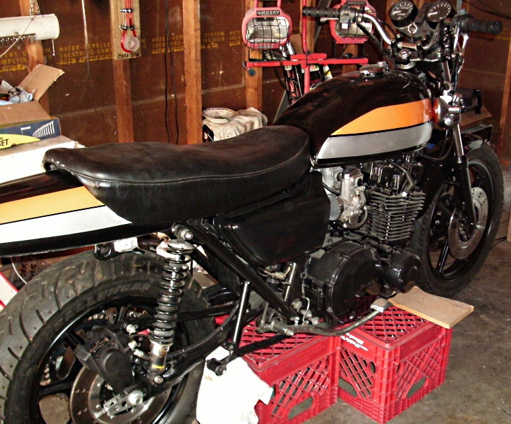14 Jan 2012 15:05 - 14 Jan 2012 15:07Handsome bike!badrhino wrote: ... 1980 Kz1000 with a J motor with 1100 heads... still piecing it together. Everything is painted. Still need to rebuild front brake calipers, install new ignition wires, adjust carbs., put on new 530 chain and sprockets, and put exhaust back on that has been painted with high-temp black paint.