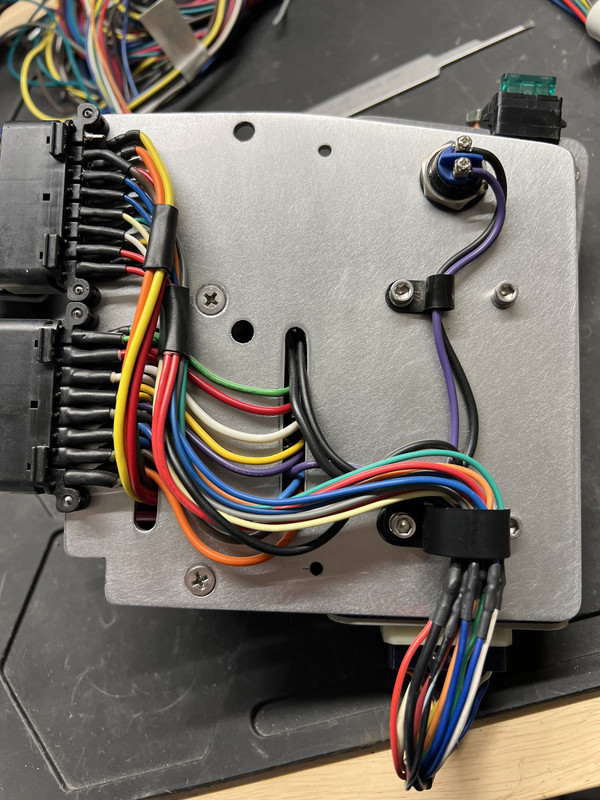 Next was harness time.....I found that Home Depot started to carry reusable zipties. So it allowed me to route each circuit exactly where I wanted it and hold it there, but loosen it up to add more wires later. Once everything was routed, I terminated, flex loomed and fabric taped / heat-shrinked the harness. I 'poke yoked" the harness so that nothing can be plugged together incorrectly. Added a GPS speedo module to feed the custom SpeedHut gauge, and also added the MotoGadget M-Lock passive lock. So I used the 'hazard' portion of the ignition switch to power the M-Lock module and hid the receiver under the tail lower panel near the tail light. So now I can use the key as standard, or keep the keys in my pocket and wave my transponder under my tail light to turn the bike on. Cool tech with key backup. Added LED bulb and ended up having to add mini-relays to let me use the OEM RH light switch to turn it off due to the built in capacitor of bulb.