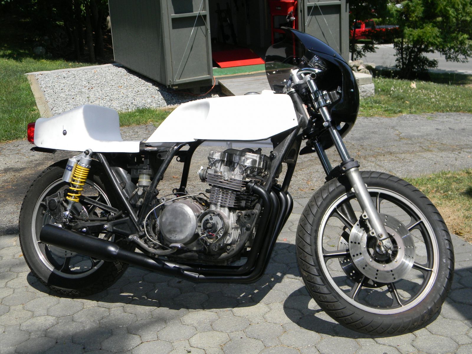 1978 KZ650 C2, 130K kms, Delkevic ex, EI, CVK32, PMC easy clutch, ATK fork brace, steering damper, braced swingarm, ZRX shocks, 18" Z1R front wheel.