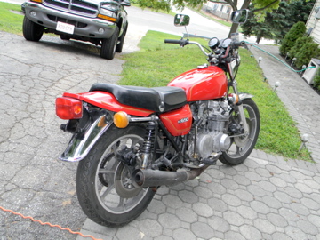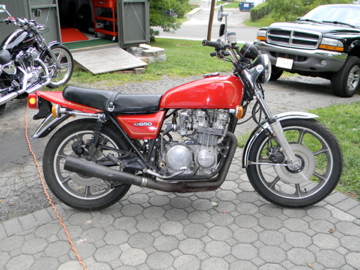 ...the second one cost me $400. I figured it would at least need tires. It's got Metzler's on it that look brand new. I figured it would need a chain. I'll be damned, got what looks like a brand new o-ring chain on it. Battery, right? Wrong, brand new. The seat is sound. It's got new paint on it. Replaced the usual missing odds and ends, except for the air box, I just can't live with an air box. Maybe one day, but not now. Like you said, with a little TLC and a visit from ol' John Barley Corn and it'll be like brand new!
