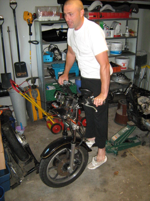 76 KZ, frame gusset work,1200CC.Ported by Larry Cavanaugh, 1.5mm.over intakes, Carron Pipe, ZRX12 rear end, and seat,96zx9 front end.