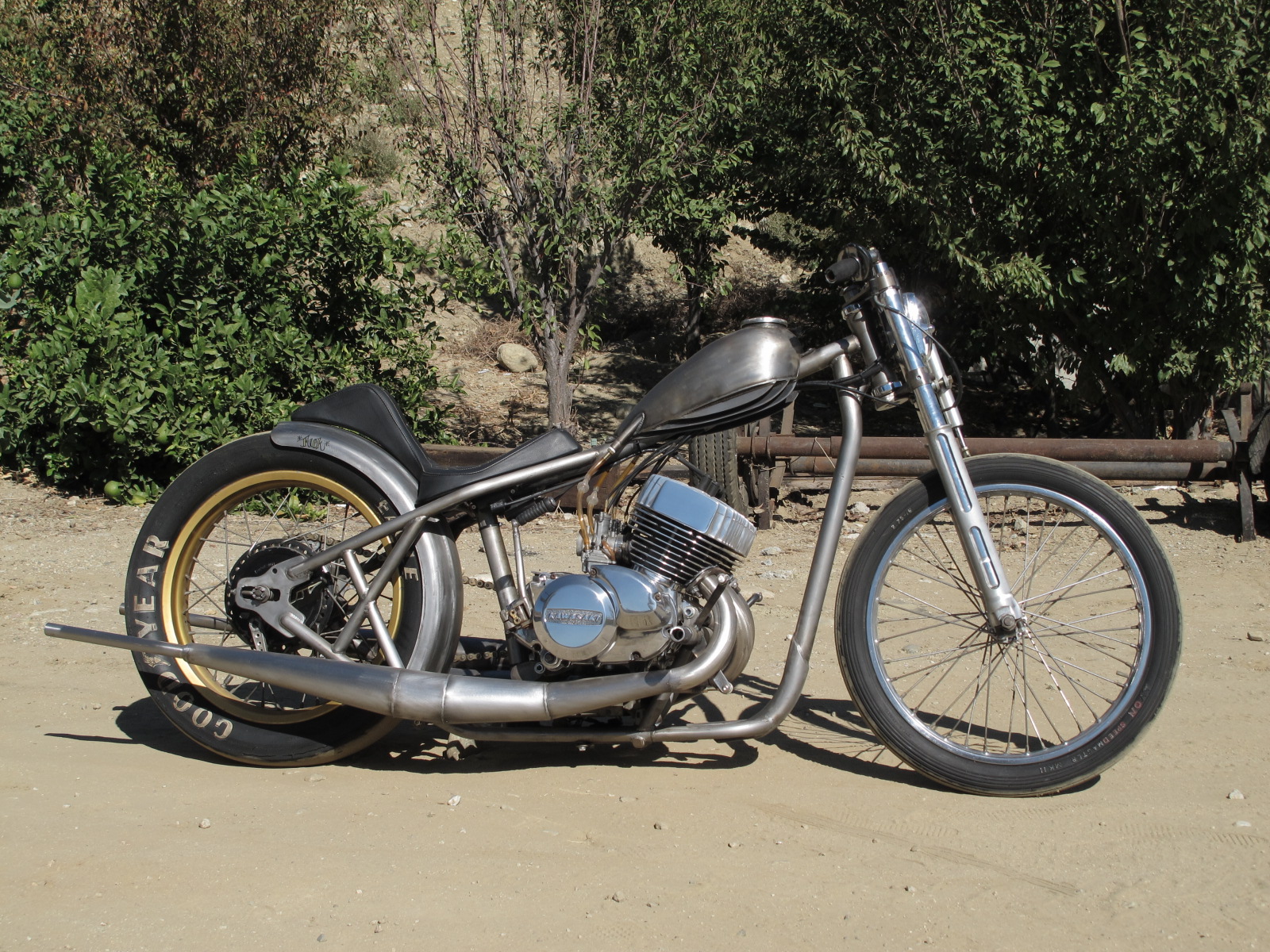 Thanks guys glad to see people get the bike. I did all the fab at my buddy's garage witch was a big help. This is an 1981 kz550 I got for $100 and rode it home $1400 bucks later this is what I got. It's one of the cheapest bike I've ever built and this is my favorite. And just got a 74 500 triple to start on got that one for $500 with a title can't wait to build a triple 2 stroke bobber , I'm going to make this one even harder to ride lol it's going to be fun thanks for looking ill try to find some more pics of the chassis chop and the cheap jig thanks