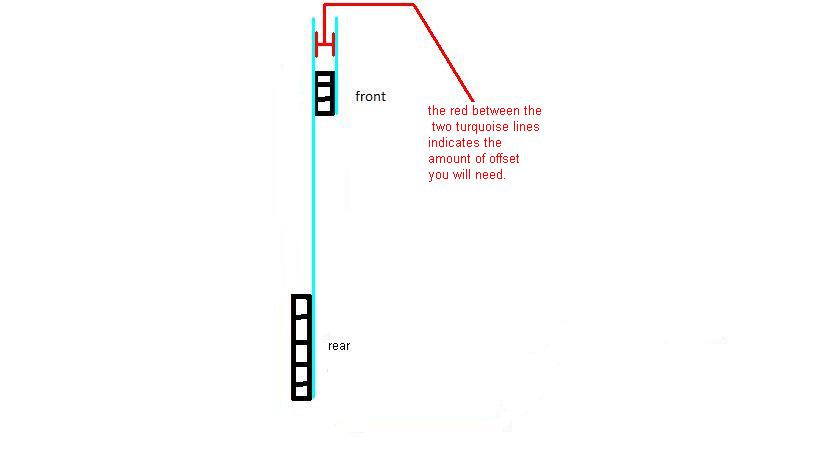 The rear tire should be aligned in the sense of pointing in exactly the same direction as the front tire, but when rolling straight down the road, the center-line of the rear tire need not track directly over the front tire's center-line.