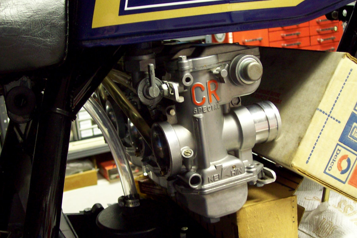 Still waiting on my cylinder head to arrive. So I am getting everything else ready for final assembly. The CR Keihins that I am using on this bike have sat in a box for 32 years, When I fired the bike up last year for the first time, I had some fuel leaking out of the inlet fuel tees. So I decided to replace every O-ring in these carbs. Glad I did!!!!! They were all flat, and mostly hard as rocks. I had all but one O-ring on hand. So I only had to order one O-ring. Plus I decided to lean the jetting out just like I had to for my Mikuni flatslides on my GSXR750. I had to drop 4 main jet sizes just to get a nice plug color. So I did the same on the CR's. Lean is mean.
