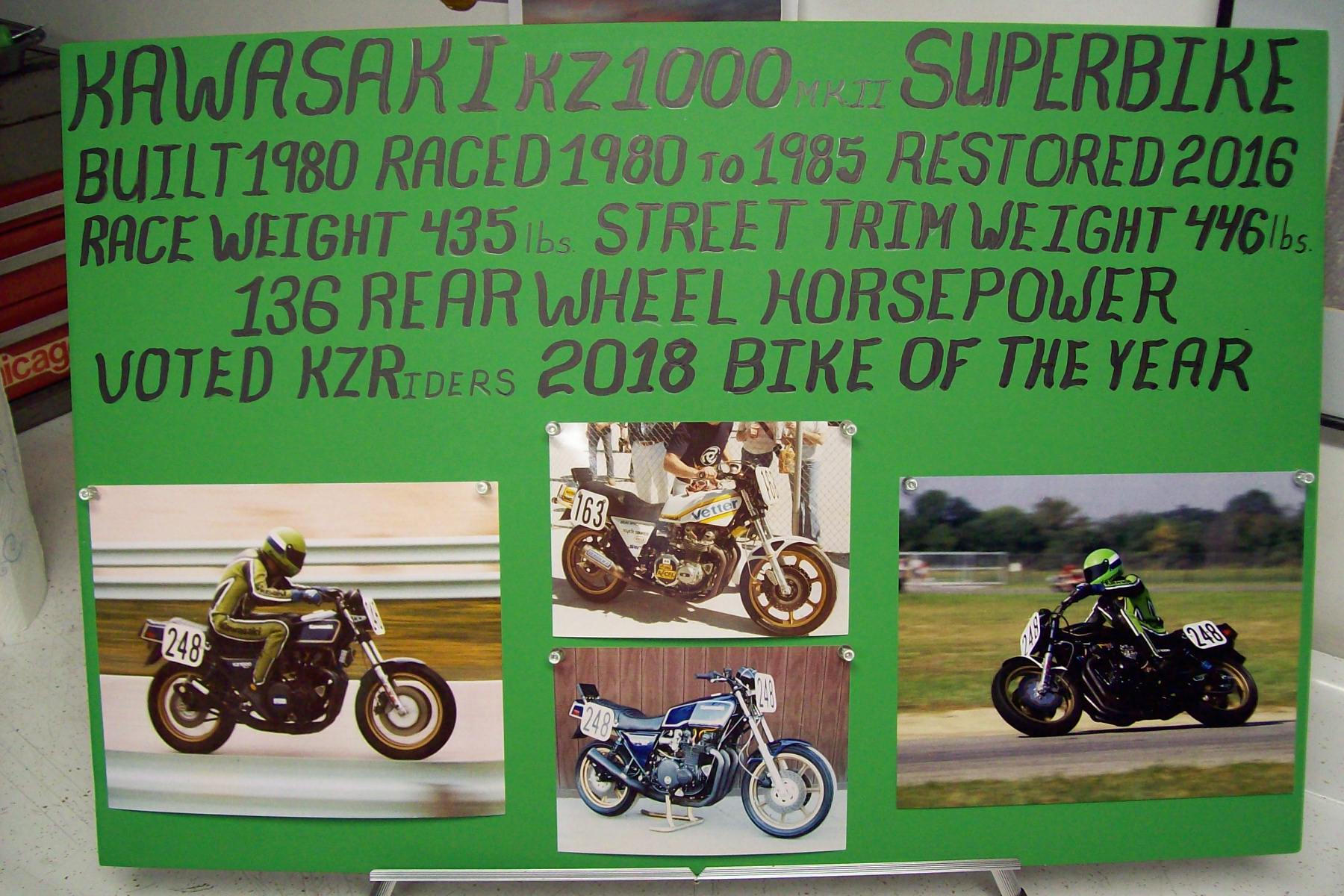 I started getting my Kz1000 ready for the VJMC West Coast Rally Bike Show already. This year I made up a poster about the history of my Superbike. It might help some folks who just look but don't ask any questions about what the bike really is!!!