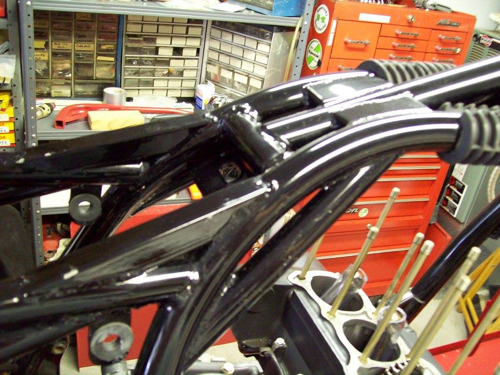 Here are some photos of what a KZ1000 frame reworked by the legendary frame guru Rob North looks like. Most everybody including the early factory Kawasaki's had their KZ1000 frames modified by him in Superbike racing!!!