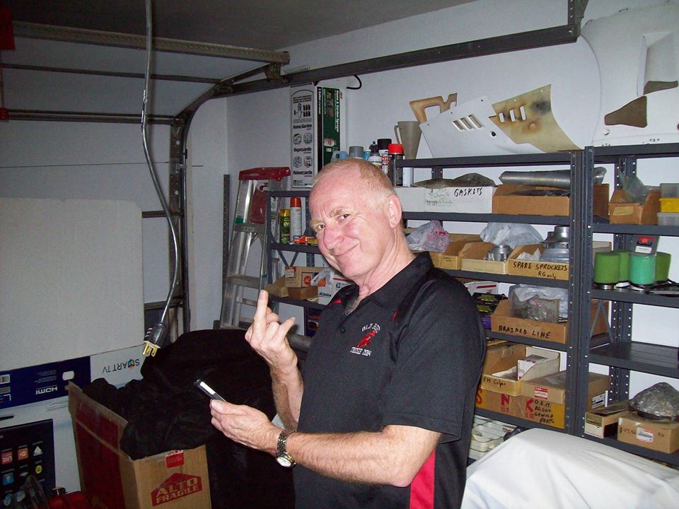 Wayne going through all the big buck race parts he ordered for his Kz Superbikes back in Oz.