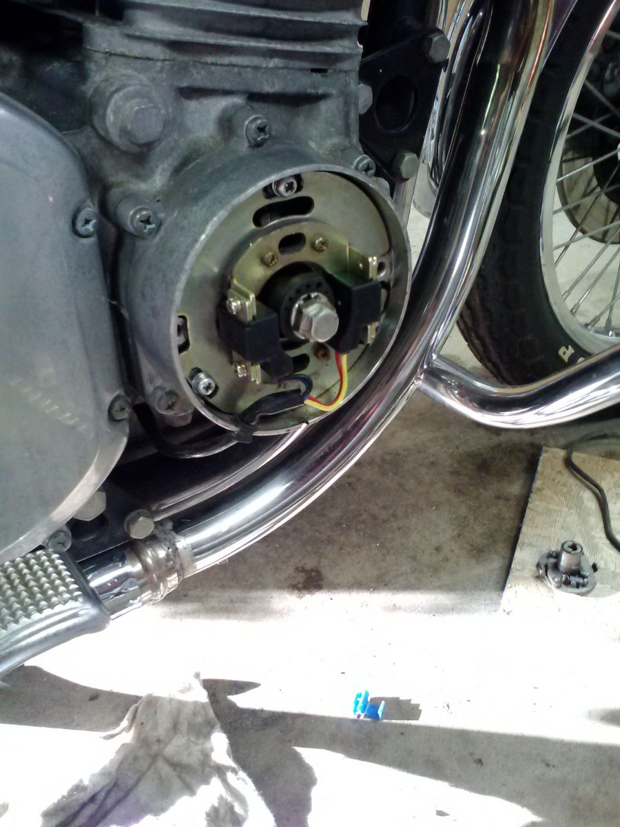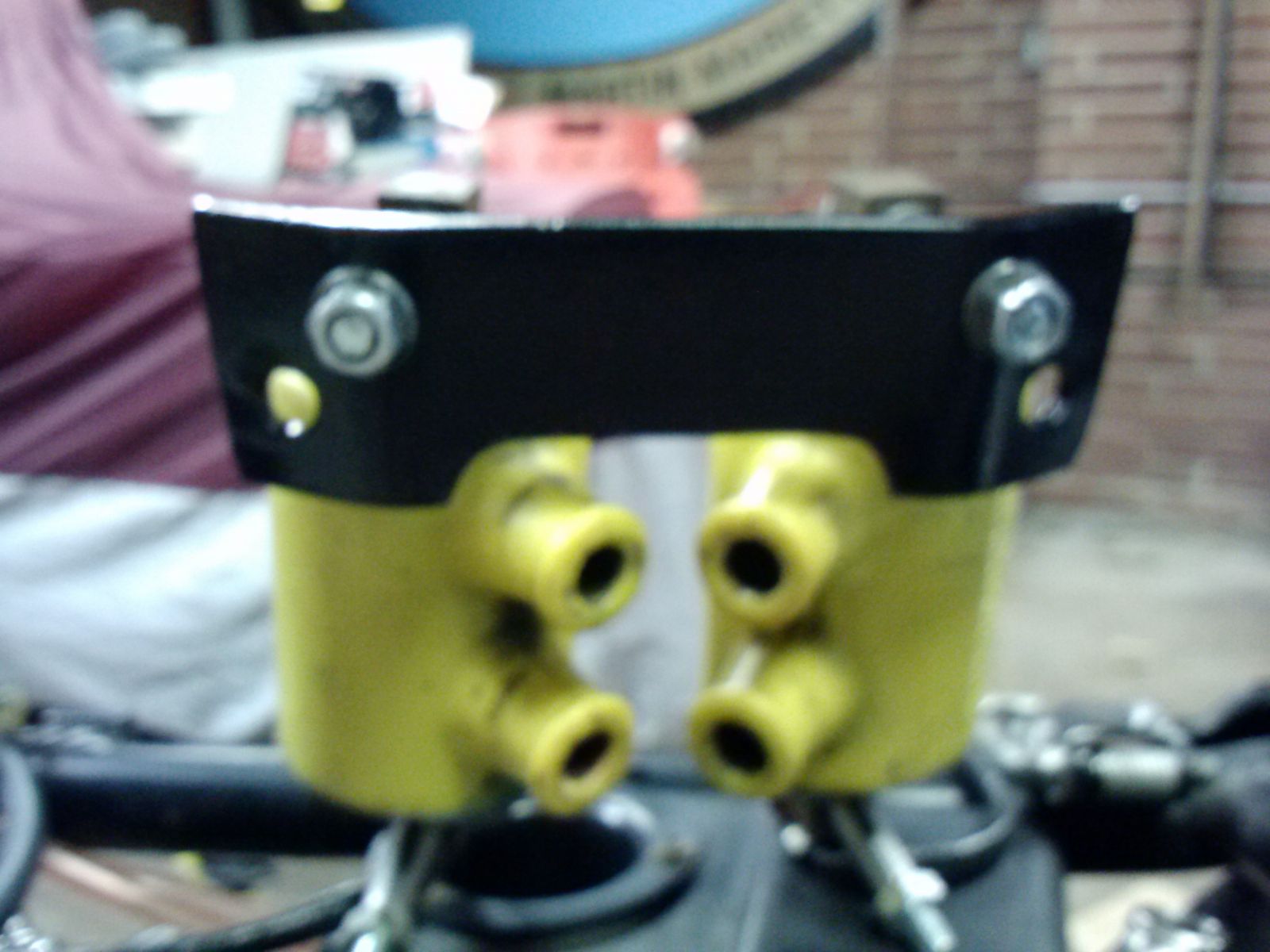 Some pics of the carb rebuild and the electronic ignition conversion. Had to make a bracket to mount the Andrews coils. Installed new Accel plug wires.