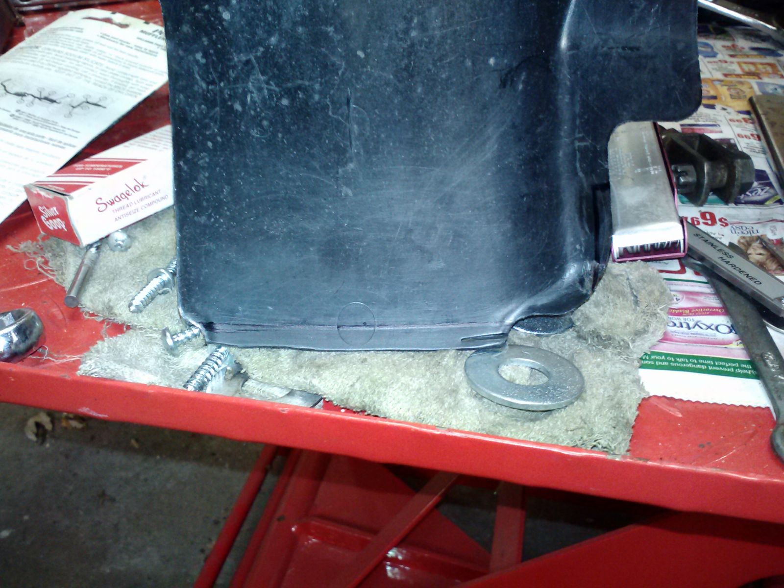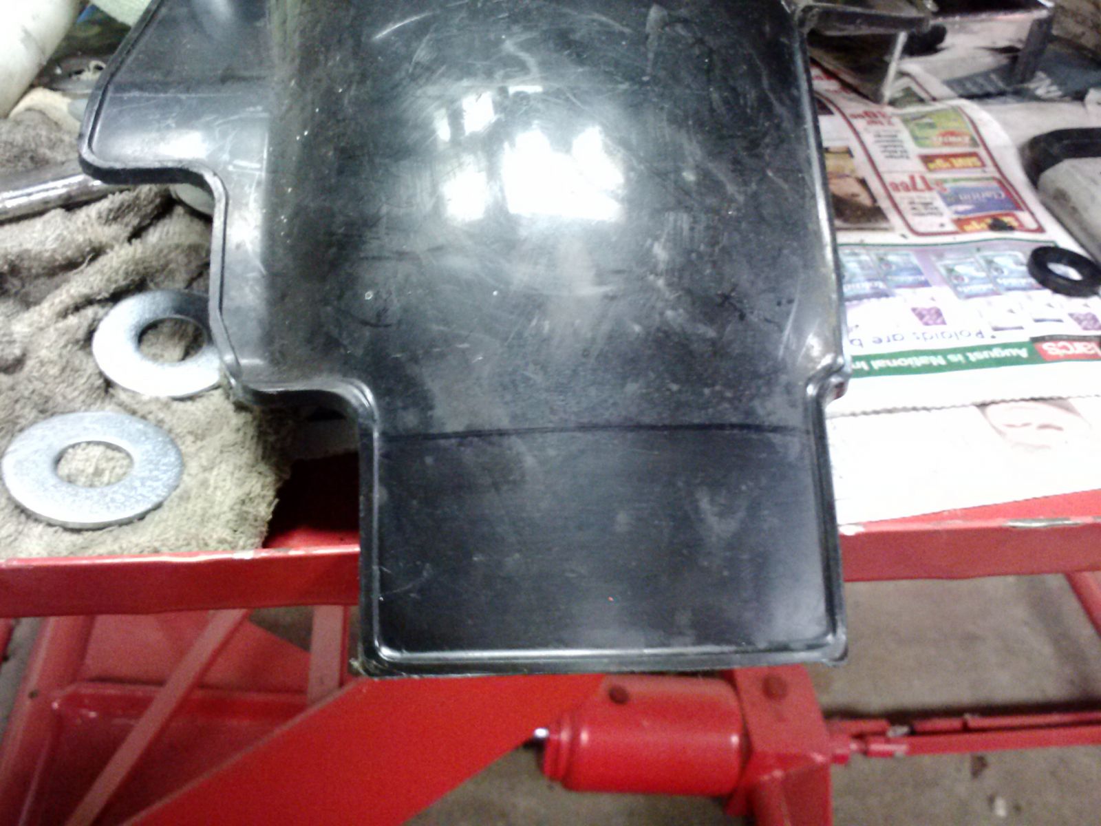 Had to modify a spare stock inner fender to clear the swingarm. I cut if off just below the point where it gets narrow and had to cut a small notch on the bottom right side too (viewed from the rear).