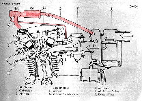 So regarding that emissions thing... I have two of these units, but neither bike had them hooked properly when I got them. I'm almost there, however I'm missing the tube that goes between the back side of the unit to the front side of the air box. To borrow an image from another member, it's the part marked in red here (air hose #3):