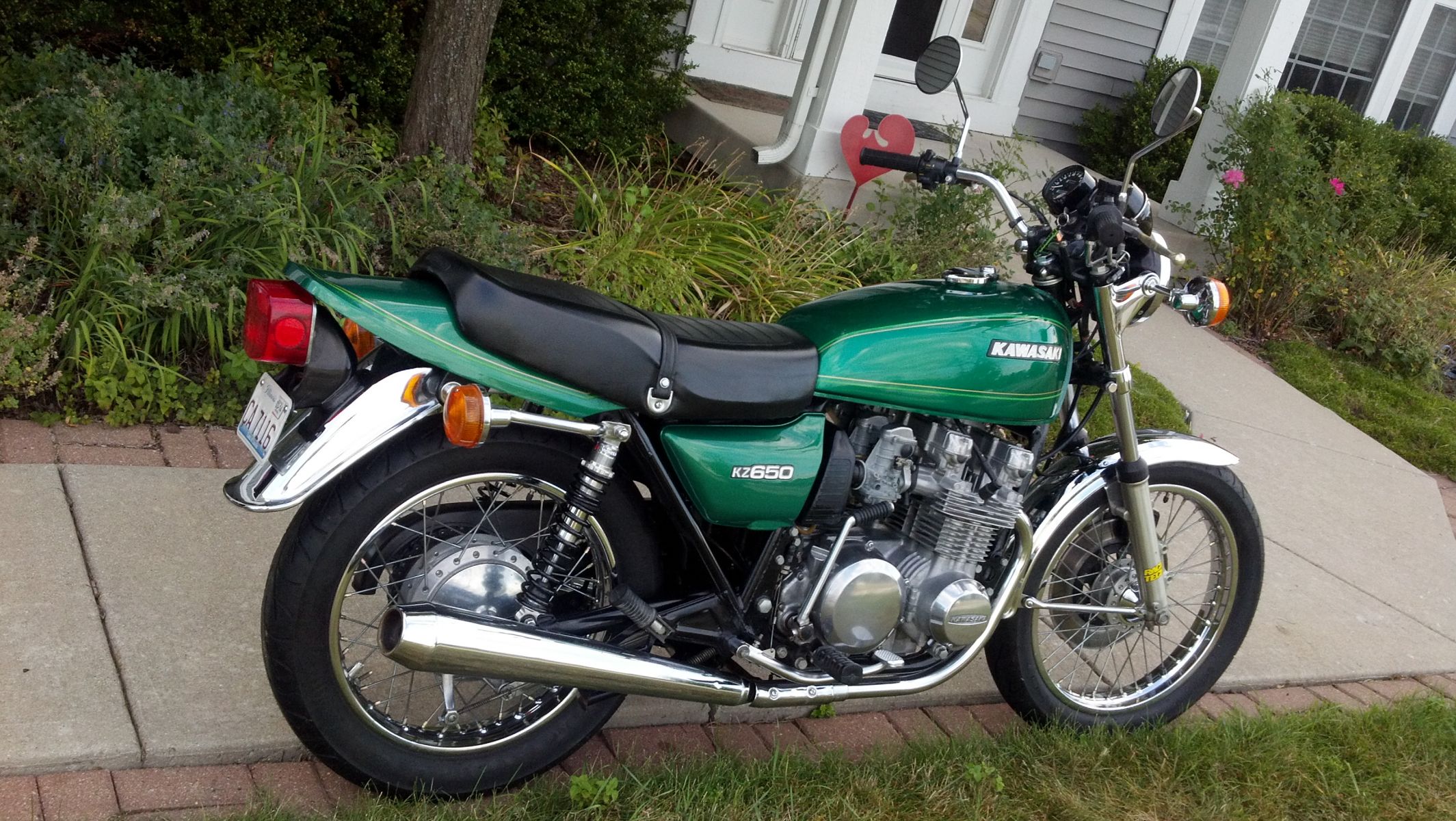 I am proud to announce and show how the KZ turned out after finding an original in the box Emerald Isle Green fuel tank. I also found a local paint shop that specializes in motorcycles. I was able to match the side covers and tail to the fuel tank. Got some decals through Z1 Enterprises. After some more spiffing, voila! A fair representation of an original low mileage stock KZ650 B1.