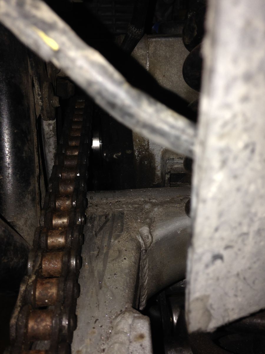 pic of the cover hitting the chain......in the pic u can see the alumimun from the cover between the frame and the chain....sprocket is not hitting the inside of cover i check.