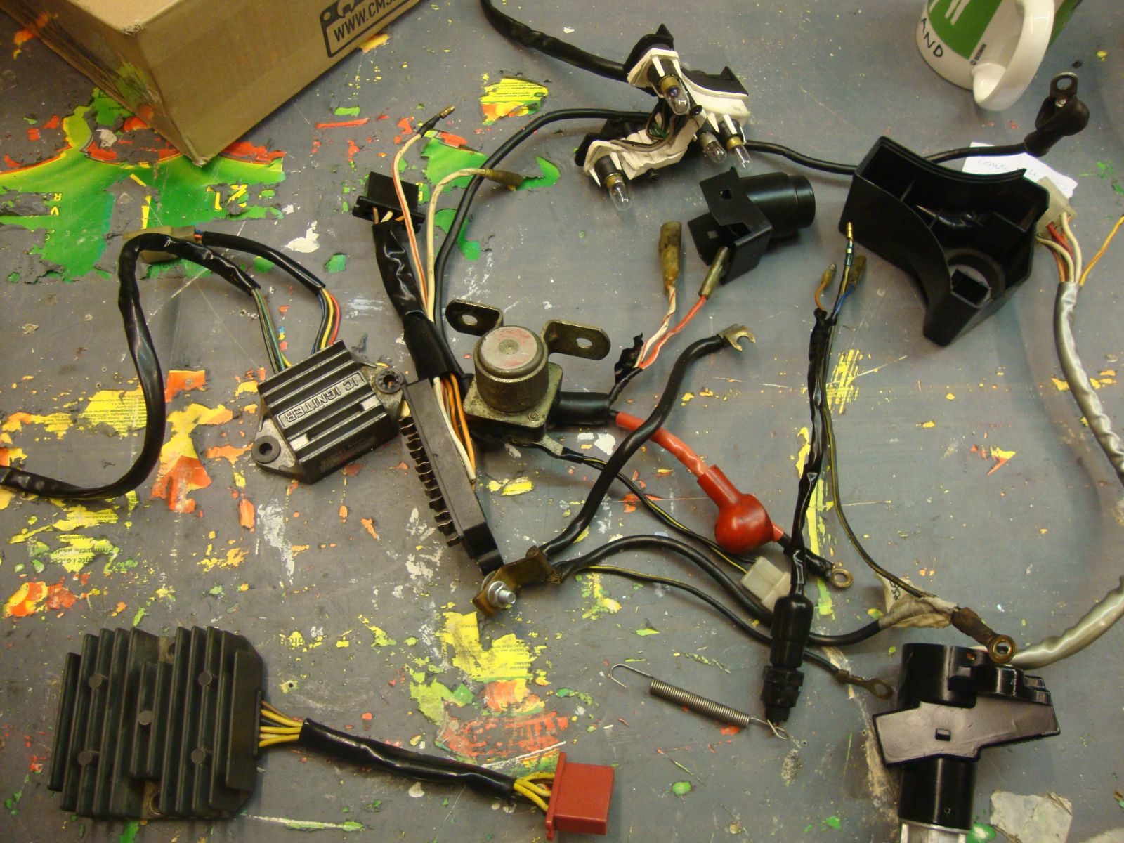 I cleaned up some of the looms ancilliary parts ,just a clean and degrease. Now I can work my way through all the bits and cheak the cables and connections etc.There was evidence of a fire on the bike at one time,though everything was working when I got it started.It still needs a good going over.
