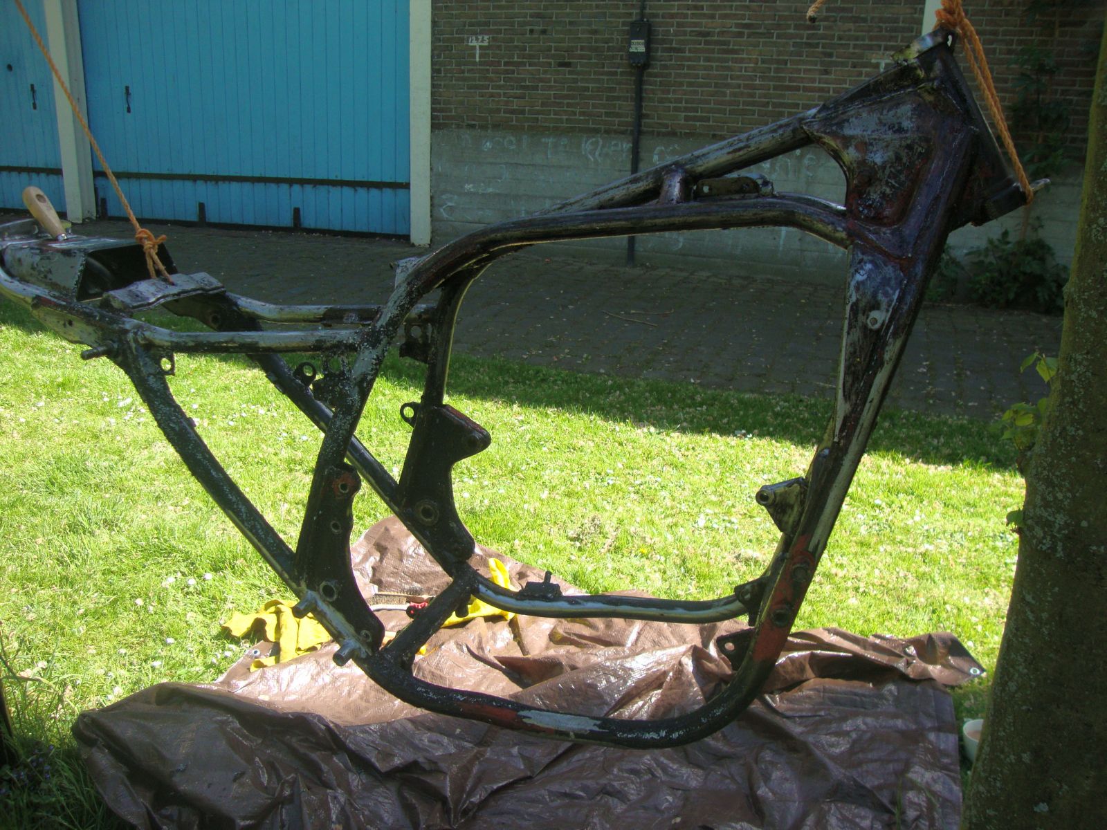 OK,the weather here is impoving.A cracking day today,so I pulled my finger out and dragged the frame outside. I decided against powdercoat