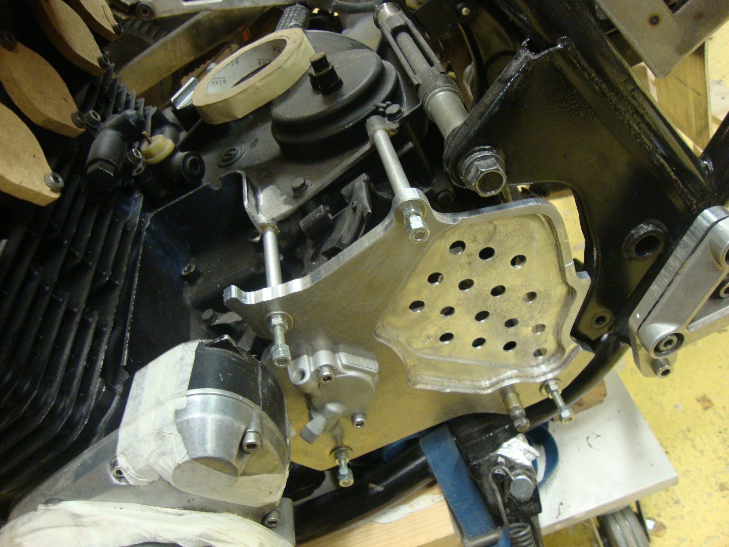 Today, it was 'Alu day'. The rearsets have been a major problem for me on this build.Mainly clearance problems with the brake pedal and the pipe on one side and on the other side, twixt the gearchange lever and the side stand Its been a real pain in the arse,to be honest. I think I got it sorted now though. I hope.