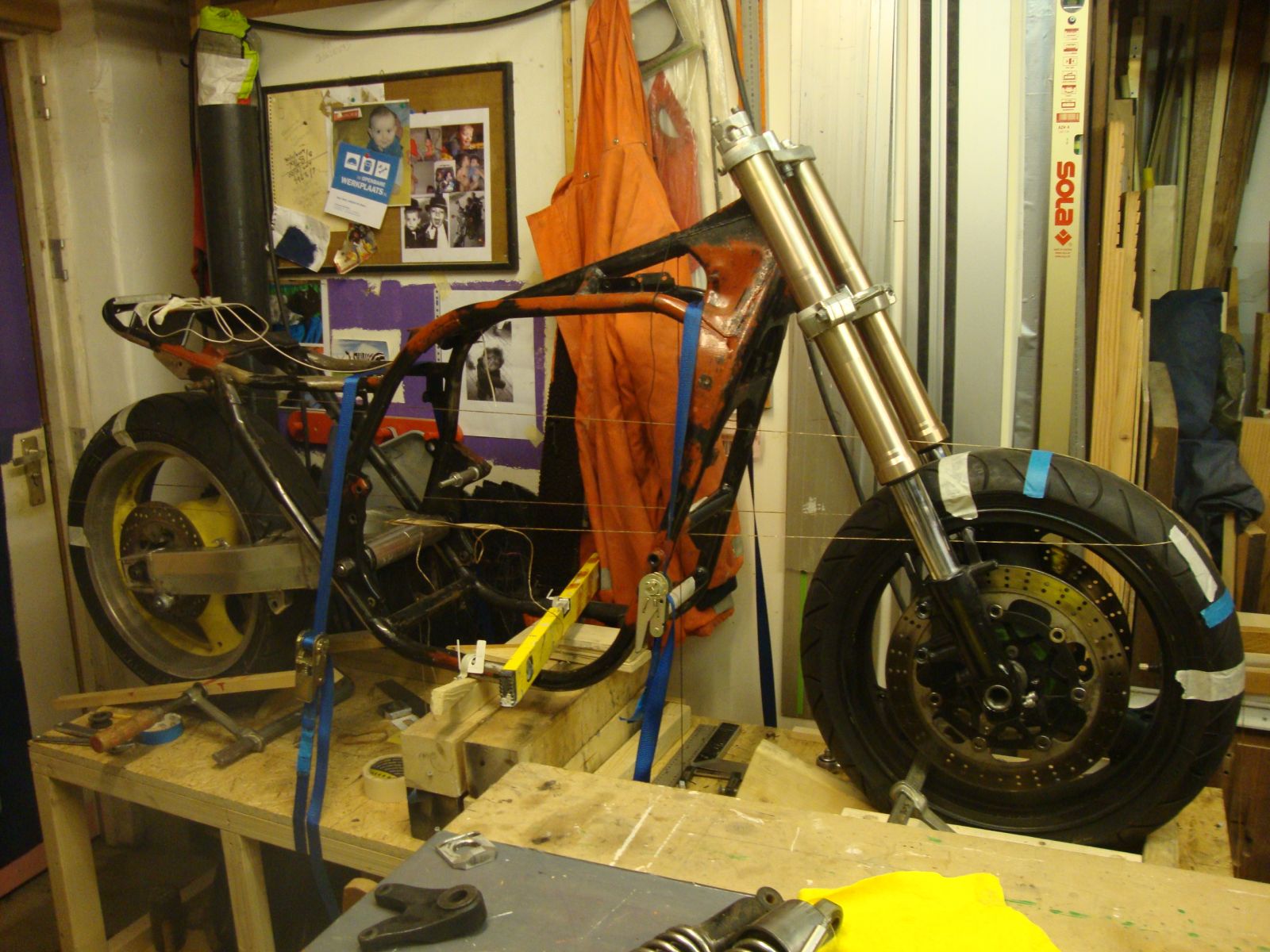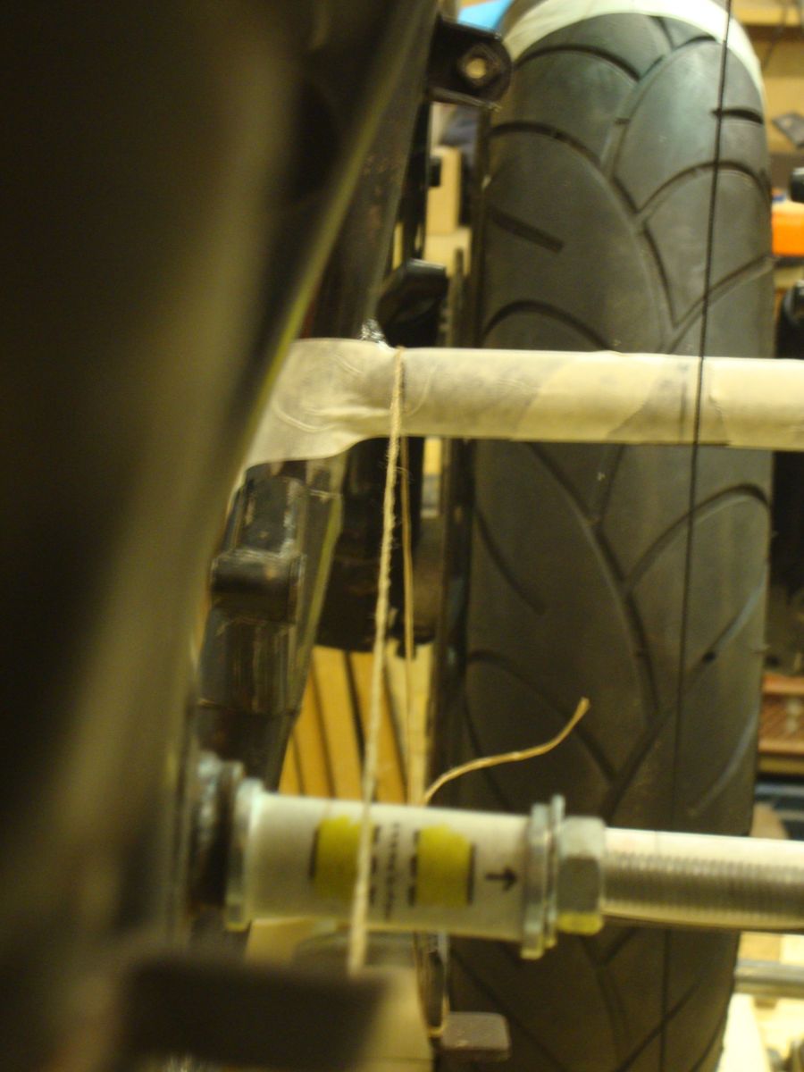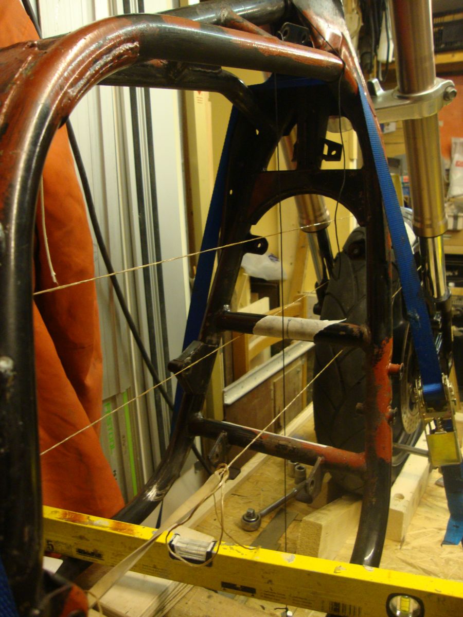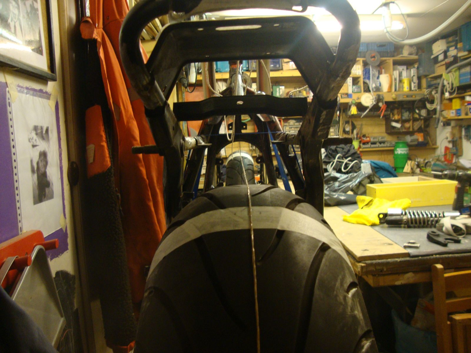 Anyway,it allowed me to get the back wheel in and line everything up to see how things stand.Lots of measuements,lots of string and lots of head scratching